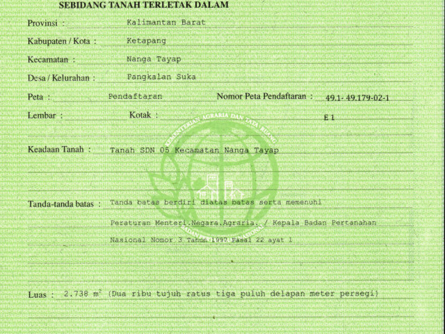 | Lokasi Tanah | : | Kecamatan Nanga Tayap |