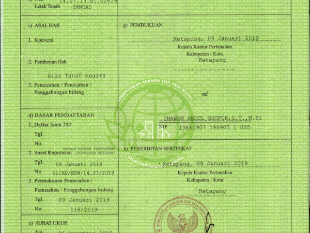 | Lokasi Tanah | : | Kecamatan Sandai |