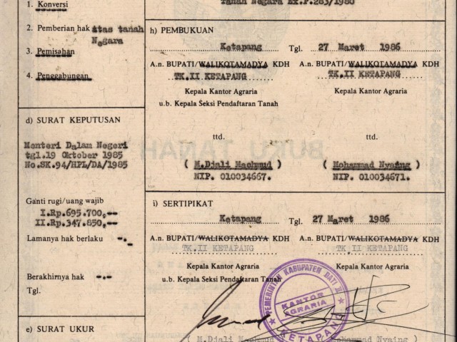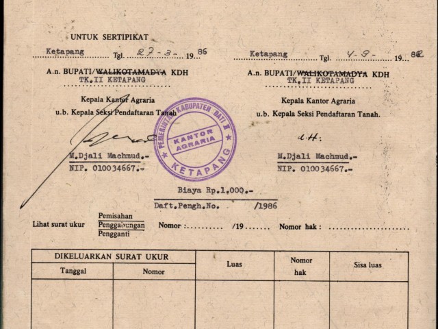 | Tanggal Sertifikat | : | 27-03-1986 |