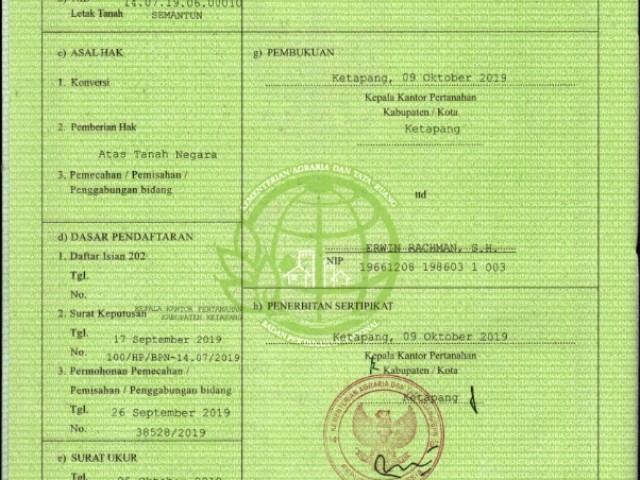 | Lokasi Tanah | : | Kecamatan Jelai Hulu |